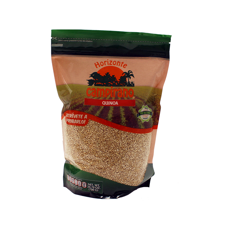 La quinoa es considerado como uno de los granos más ricos en proteínas. Se utiliza esencialmente como alimento para consumo humano en panificación, galletas, cereales preparados, barras energéticas, postres, pastas, sopas, cremas, guisos, torrejas y bebidas. Es de color crema y sabor ligeramente dulce.